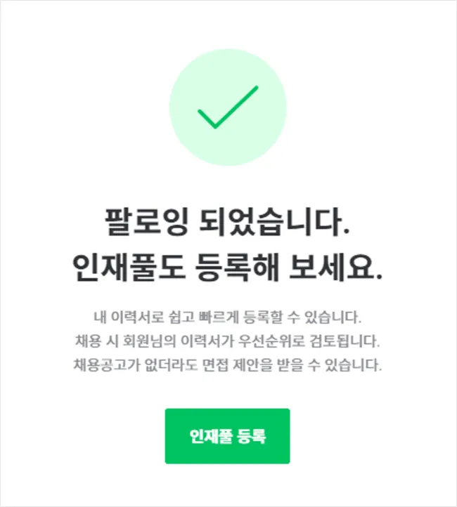 ▼ 팔로잉 버튼 클릭시 구직자에게 노출되는 화면