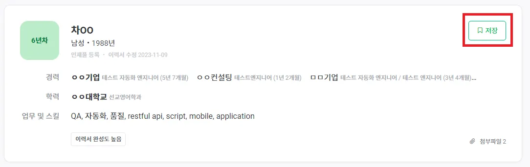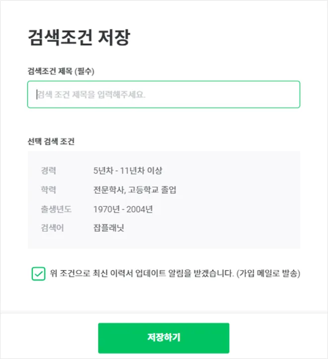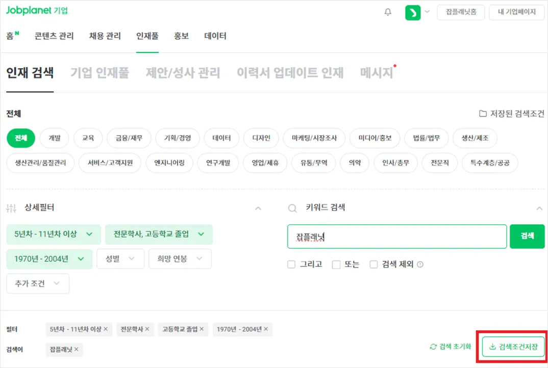 검색 조건을 저장하여 조건에 맞는 인재를 간편하게 검색하고 확인 할 수 있습니다.