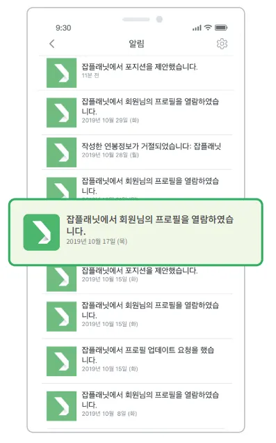 인재풀에 등록된 프로필 확인 시, 인재에게 프로필 열람 알림이 발송됩니다.