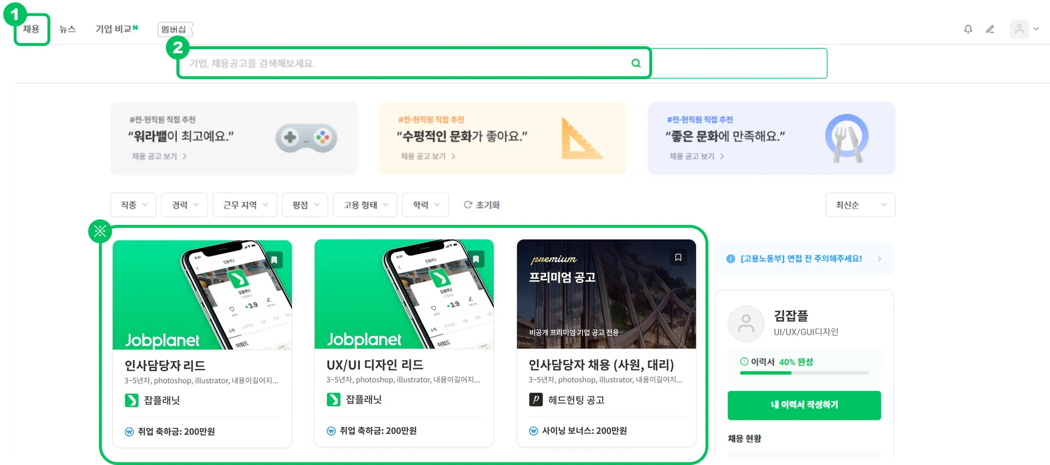 ① 잡플래닛 접속 후 채용 카테고리 클릭