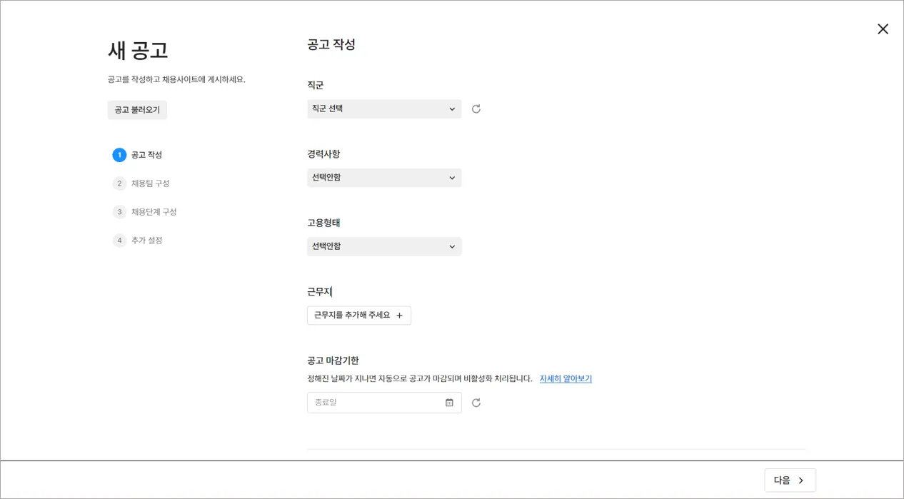 1) 그리팅 공고 항목에 맞게 새 공고 작성