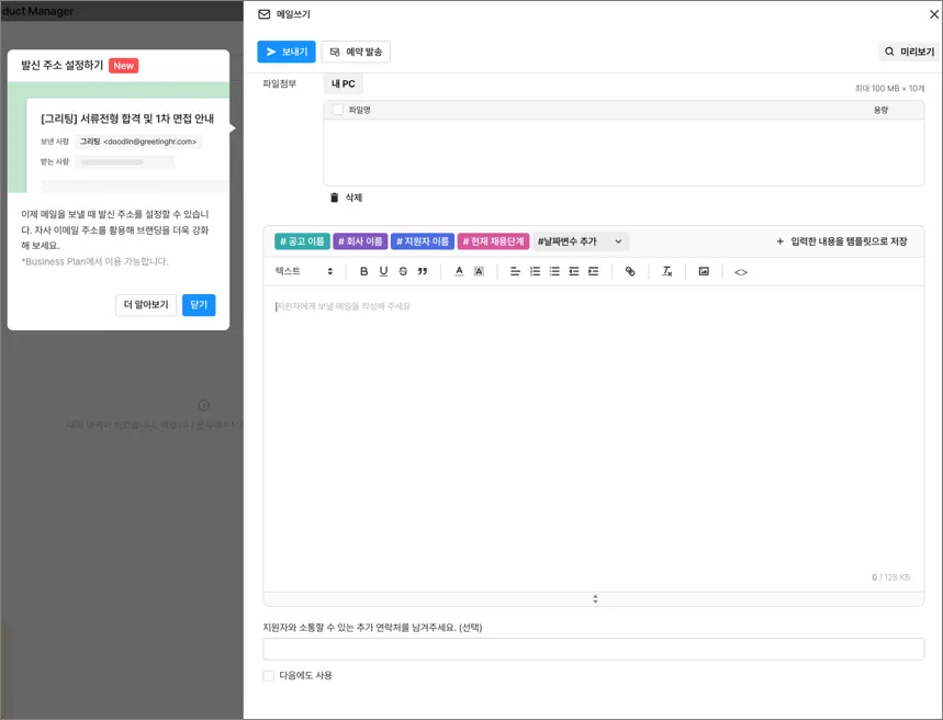그리팅 지원자 관리