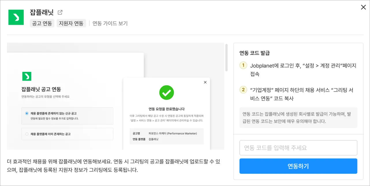 잡플래닛x그리팅 연동 방법