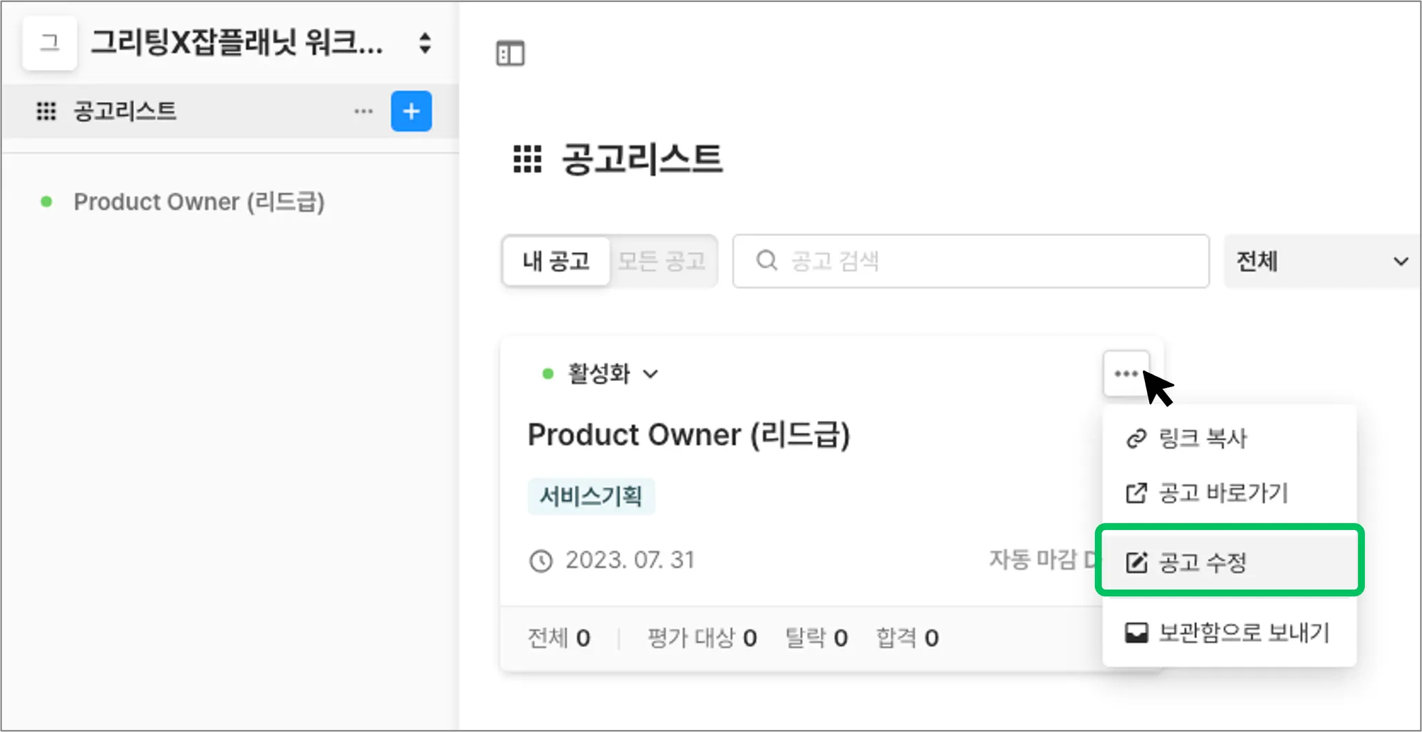 3. 그리팅에 연동된 공고 수정하기
