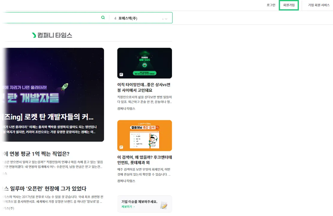 가입 화면 상단에 기업회원을 클릭해주세요.
